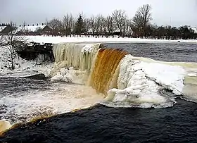 ![]() El río a su paso por la aldea de Jägala-Joa, donde se origina la cascada de Jägala. | ||