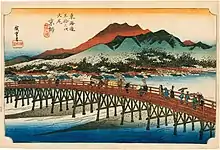 El encuentro entre Minamoto no Yoshitsune y Benkei en el puente Gojō (no el actual, pero presumiblemente Matsubara Bridge) sobre el río es una famosa leyenda establecida en el período de Heian tardío. El puente de Sanjō fue considerado como el extremo del oeste del Tōkaidō durante el período de Edo.