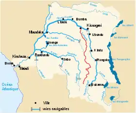 Pasa por Lubao, Tshofa, Kombe, Bolaiti, Opala e Irema antes de desaguar en el río Congo por la izquierda en Isangi (10.850 hab. en 2004), a unos 110 km al oeste de la Kisangani, la capital de la provincia de Tshopo (con 682.599 hab. en 2004).