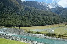 Las aves que se alimentan de insectos como elpiwakawaka, el tomtit y el acantisita verdoso prosperan en el bosque de hayas, mientras que el kākāriki que se alimenta de semillas prefiere específicamente las áreas de haya roja. Los chorlitos del paraíso prosperan en las llanuras del río y, en verano, el chorlito aliblanco y los ostreros son una vista común en las tierras de cultivo y a lo largo del camino desde Wanaka. El valle también es hogar del kea, whio, petirrojo de la Isla Sur, reyezuelo, murciélago de cola larga de la Isla Sur y varias especies de lagartos. [2]