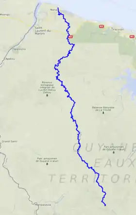 El río Mana es un importante río de la Guayana Francesa. Tiene fama de tener 99 saltos. Sus principales afluentes son la crique Portal, la crique Arouany, la crique Lézard y el río Acarouany. Nace dentro del macizo central de la Guayana al noroeste de la ciudad de Saül.