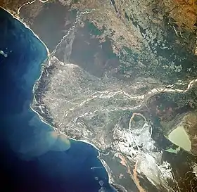 ![]() El delta del río Mangoky desde el espacio (nov 1989) (el sur está hacia arriba) (NASA) | ||