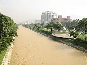 ![]() Imagen del río discurriendo por el centro de Medellín. | ||