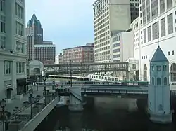 El río Milwaukee tiene numerosos puentes móviles que lo cruzan, destinados tanto al paso de peatones como al tráfico rodado. Estos puentes son de diversos tipos, incluidos los basculantes y los de elevación vertical. También hay algunos puentes fijos así como puentes destinados únicamente al paso de peatones o a ferrocarriles.