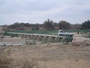 - Puente en la carretera principal Bulawayo - Beitbridge, entre Esigodini y Mbalabala, aguas abajo de la presa Mzingwane . También hay un puente ferroviario.