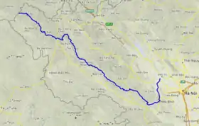 Su fuente está en la provincia de Yunnan, en China. Luego discurre a través de las provincias de Lai Chau (donde forma parte de la frontera con la provincia de Điện Biên), Son La y Hoa Binh. Se une al río Rojo en el Distrito de Tam Nong, cerca de Viet Tri, en la provincia de Phu Tho. También forma parte de la frontera entre la provincia de Phu Tho y Hanoi (antes frontera con la antigua provincia de Hà Tây).