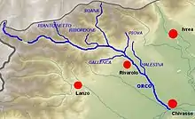 Nace desde el lago Rosset[3] y desciende el valle homónimo hasta Cuorgnè. Desde aquí atraviesa la llanura padana con un ancho lecho de grava y guijarros[4] desembocando al final en el Po por la izquierda entre Chivasso y Brandizzo.