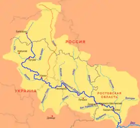 Administrativamente, el río discurre por el óblast de Kursk y el óblast de Bélgorod de la Federación de Rusia y el óblast de Járkov de Ucrania.