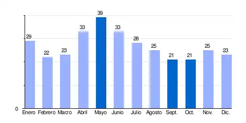 Caudal medio mensual del río Pangani, medido en la estación hidrológica en el estado de Korogwe, a unos 110 kilómetros por encima de la boca, en m³/s (1959-1977).[14] El Pangani fluye dependiendo del tiempo, como la mayoría de los ríos de la región.