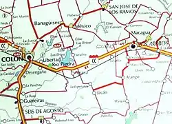 Se encuentra en la carretera que une el municipio de Colón con Agüica. Tiene además estación de ferrocarril.