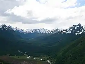 Si bien en todo su trayecto discurre exclusivamente sobre territorio argentino, afluentes por su margen derecha en el sector medio de su cuenca tienen sus nacientes en territorio chileno, de la comuna de Cabo de Hornos ubicada en la Provincia de Tierra del Fuego, en la Región de Magallanes y de la Antártica Chilena. Esto lo define como un río argentino de cuenca argentino-chilena.