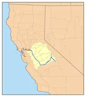 Afluentes | Ríos Tuolumne (239 km), Merced (230 km), Stanislaus (154 km), Mokelumne (153 km), Chowchilla (87 km), Calaveras (84 km), Cosumnes, y Fresno | |
