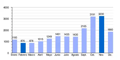 Caudal medio mensual del Sangha en la estación hidrométrica de Ouesso (Datos calculados en 37 años, 1947-83, en m³/s) |