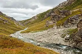 La carretera del parque nacional desde la entrada en dirección Kantishna atraviesa el río. A orillas del río se encuentra el camping Savage River.[1]