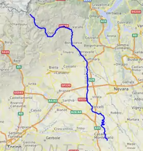 Nace de los hielos del monte Rosa, desciende lentamente el verde valle de Valsesia, recibiendo el agua de numerosos torrentes: el Artogna, el Egua, el Mastallone o el Sessera. Su principal tributario es el río Cervo.