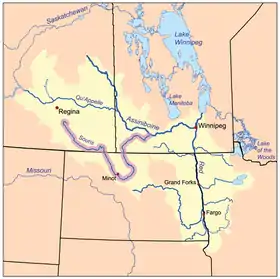 El río Souris se origina en Yellow Grass Marshes, al norte de Weyburn, en la parte suroeste de la provincia canadiense de Saskatchewan, después fluye al sureste ingresando a Dakota del Norte, donde vira al norte para volver a entrar a Canadá, uniéndose al río Assiniboine en Manitoba después de haber recorrido unos 700 km.