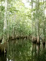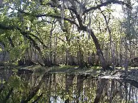 El río llega al lago George, el segundo mayor del estado con 190 km². En los bosques que rodean el lago se pueden encontrar los siguientes árboles o plantas: el pino Ellioti, la serenoa y unas cien especies de arbustos. Estos bosques son relativamente secos, pero pueden atravesar periodos de inundaciones. Los animales de gran tamaño que albergan son el pavo salvaje, la grulla canadiense y la mayor población de águila calva o águila americana de los Estados Unidos contiguos. Algunos mamíferos que viven en este ecosistema son el mapache boreal o racuna, el tlacuache, el lince rojo o el venado de cola blanca.