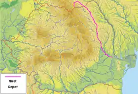 El río discurre por el ucraniano óblast de Chernivtsi y por el distrito rumano de Suceava.