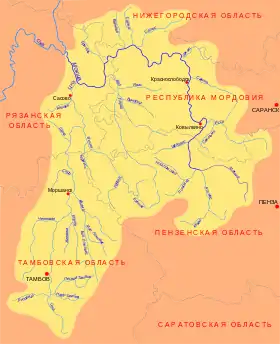 El río por debajo de Tambov es serpenteante y tranquilo, de 40-80 m de anchura, que fluye a lo largo de un amplio valle con muchos riachuelos. En las orillas hay juncos y matorrales arbustivos. El agua está marcadamente contaminada.