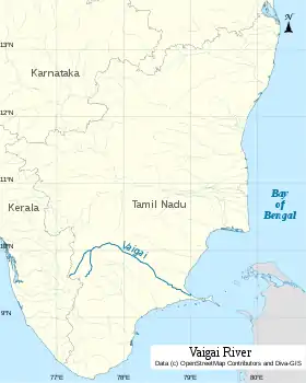 El río Vaigai es un río de la India del distrito de Madurai, estado de Tamil Nadu, que nace de la unión de dos riachuelos en los valles de Kambam y Varushanad. Desde los Ghats Occidentales discurre al este y al norte unos 80 km recibiendo los ríos que bajan de las montañas Palni, y luego gira al sudeste hasta llegar al mar, donde desagua a unos 15 km al este de Ramanathapuram. No lleva agua durante una buena parte del año.
