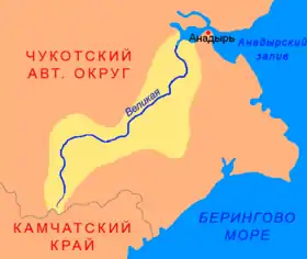 Administrativamente, todo el río, y su cuenca, pertenecen al distrito autónomo de Chukotka de la Federación de Rusia.