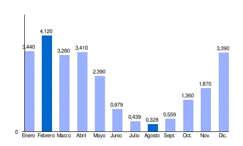 Caudal medio mensual del río Verdouble en la estación de Tautavel (en m³/s. Datos calculados para una cuenca de 305 km², en el período de 42 años, 1967-2008)[3] |