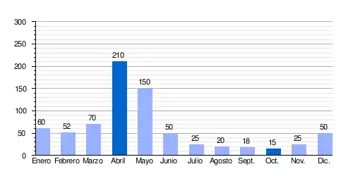Caudal medio mensual del Wami en la estación hidrológica de Mandera (Datos correspondientes a un período de 30 años (1954-1984), en m³/s)[5] |