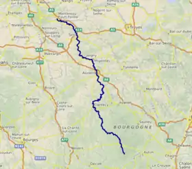 El Yonne fluye, de manera general, del sureste hacia el noroeste pasando a través de 115 comunas, la mayoría de ellas en Borgoña; las principales comunas son:[2]