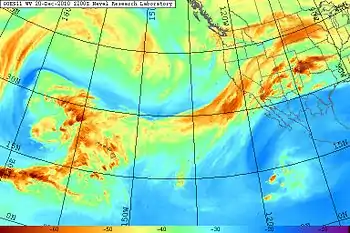 Un río atmosférico es una alargada banda de humedad concentrada en la atmósfera, que transporta vapor de agua y agua en forma de nubes, generalmente a lo largo de los límites entre grandes áreas de flujo divergente del aire en superficie, lo que incluye las zonas frontales asociadas a los ciclones extratropicales que se forman sobre los océanos.[1][2][3][4]