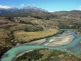 El río del Salto proviene de un pequeño lago que recibe los deshielos de un glaciar ubicado sobre el cerro Tres Hermanos y se dirige al NNO por unos 65 km mientras recibe por su derecha al río Pedregoso y el río Tranquilo (Del Salto). En su curso inferior recibe al río Desaguadero (Del Salto) que es emisario de tres lagunas en serie: la laguna Larga, el lago Chacabuco y el lago Juncal.[1]: 268