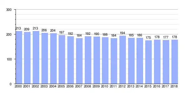 Gráfica de evolución demográfica de Rañobre entre 2000 y 2018 |