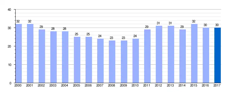 Gráfica de evolución demográfica de Rabanal de Luna entre 2000 y 2017 |