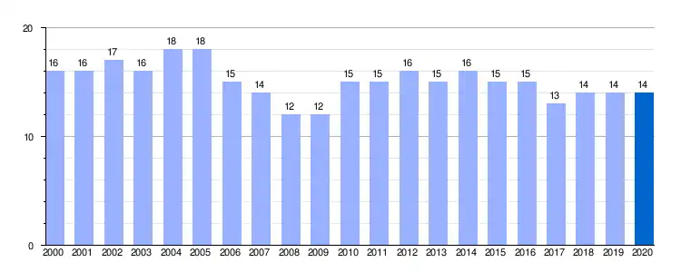 Gráfica de evolución demográfica de Rabanal de los Caballeros entre 2000 y 2020 |