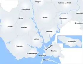Limita al oeste con las comunas de Larmor-Plage, Lorient y Lanester y, al este, con los de Kervignac, Locmiquélic, Port-Louis y Gâvres.