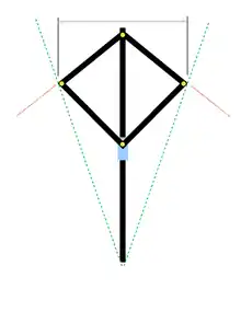 El instrumento goza de un marco de cuatro ejes sujetos por cuatro varas que se deslizan a lo largo de un bastidor. Formando en todo momento un deltoide simétrico respecto al bastidor central (más largo). El bastidor central está reglado, de tal forma que el deslizamiento permite una lectura racional en función de los ángulos.