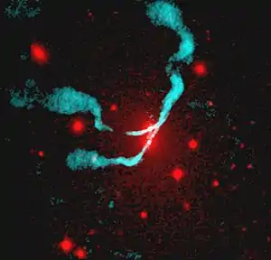 - Cola de ángulo amplio, una fuente intermedia entre los estándares FRI y FRII, con chorros eficientes y algunas veces, puntos calientes, pero con columnas en lugar de lóbulos, encontrados cerca de los centros de agrupaciones galácticas.