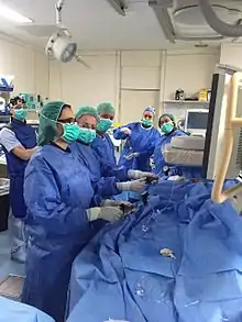 - Esta obra contiene una traducción parcial derivada de «Interventional radiology» de Wikipedia en inglés, publicada por sus editores bajo la Licencia de documentación libre de GNU y la Licencia Creative Commons Atribución-CompartirIgual 3.0 Unported.