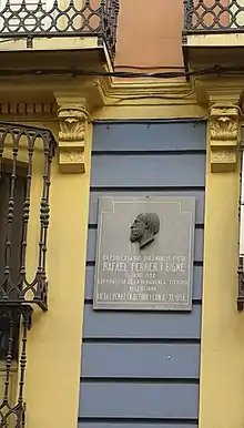 En 1957 Lo Rat Penat colocó una lápida conmemorativa en el número 21 de la calle Quart, casa donde murió a causa de una bronconeumonía crónica.