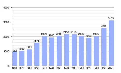 Gráfica de evolución demográfica de Ragalna entre 1861 y 2001 |