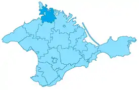 La región está situada en el norte de la península de Crimea. El área del distrito está bañada al oeste por las aguas del Mar Negro, en la bahía de Karkinit, y en el este por el Mar de Syvach.