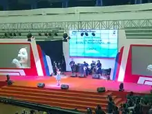 ![]() Raisa, en la clausura de la ceremonia de la Indonesian National Science Olympiad (OSN) 2012. | ||