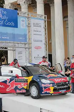 ![]() Los ganadores de la prueba, Loeb y Elena, en el podio. | |||||