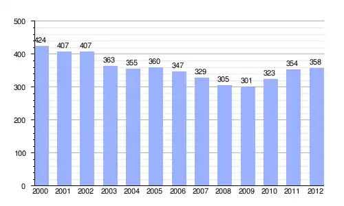 Población (2000-2011) según el nomenclátor de unidades poblacionales del INE.[14] |