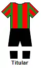 Actualmente su uniforme titular está compuesto por una camiseta roja con rayas verticales verdes, pantalón y medias negras.