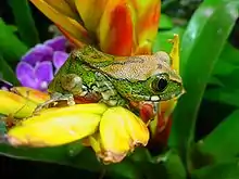 - Esta obra contiene una traducción derivada de «Tree frog» de Wikipedia en inglés, publicada por sus editores bajo la Licencia de documentación libre de GNU y la Licencia Creative Commons Atribución-CompartirIgual 3.0 Unported.