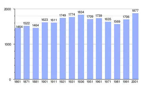 Gráfica de evolución demográfica de Rapagnano entre 1861 y 2001 |