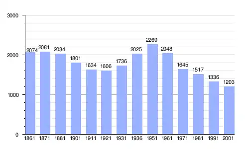 Gráfica de evolución demográfica de Rapone entre 1861 y 2001 |