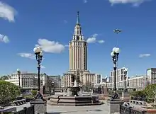 La torre de viviendas de Kotélnicheskaya Náberezhnaya (malecón Kotélnicheskaya), la 3.ª más alta de las del conjunto y la más antigua, llegó a ser la más alta de toda Rusia, con 176 metros.