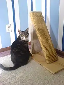 Un rascador es un poste de madera cubierto con un material áspero que los dueños de gatos disponen para que se rasquen sus mascotas. Los gatos tienen un impulso natural de rascarse: la acción les ayuda a eliminar material viejo de sus garras y marcar el territorio con las glándulas olorosas de sus patas. Se puede evitar que los gatos de interior ejerzan este impulso en los muebles y tapicerías de la vivienda si cuentan con un rascador aceptable.