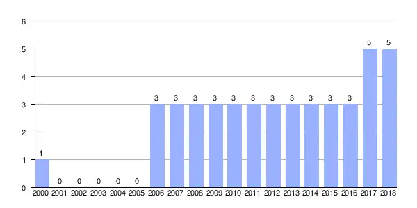Gráfica de evolución demográfica de Rascados entre 2000 y 2018 |